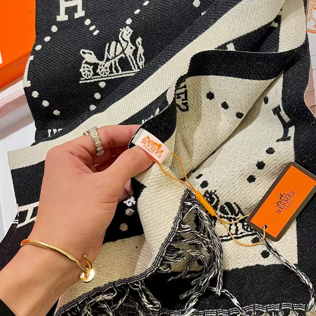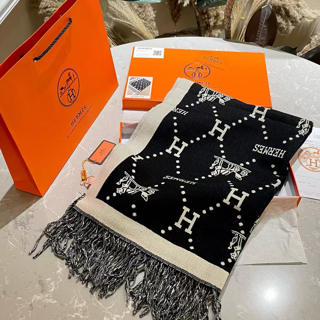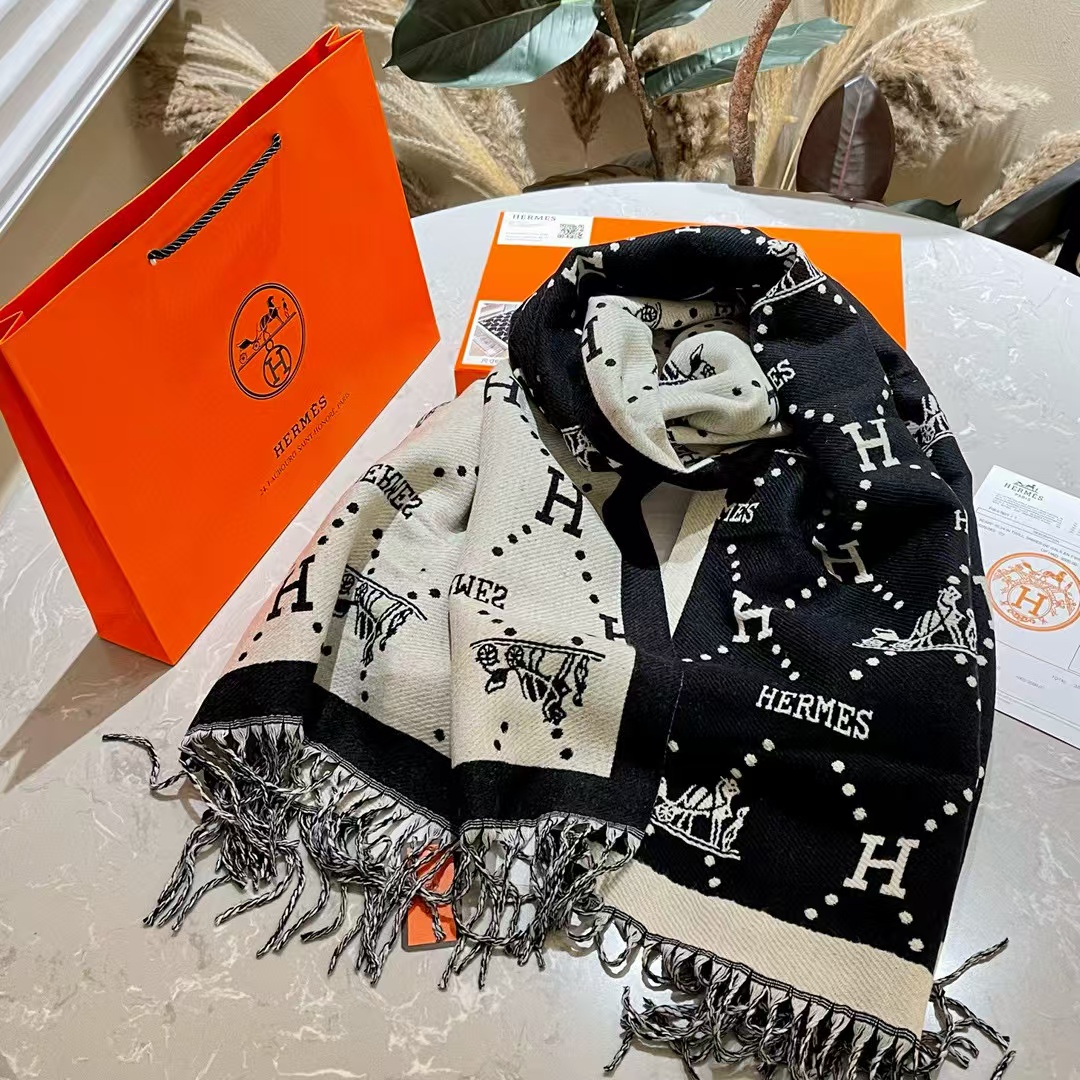 HEMRE5 クラシック フリンジ付きカシミヤ スカーフ【50%割引+送料無料】