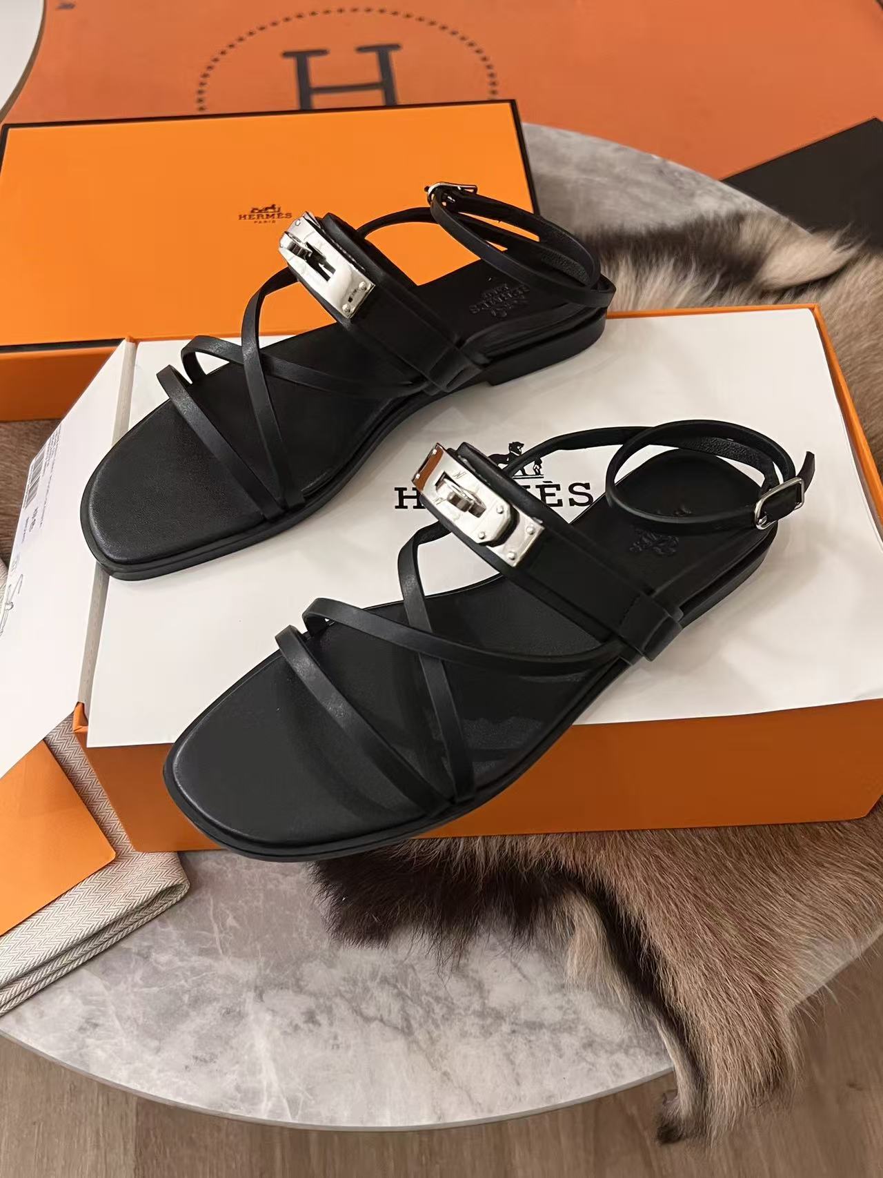 HERME5高品質ケリーバックルレザーフラットサンダル【50%割引+送料無料】