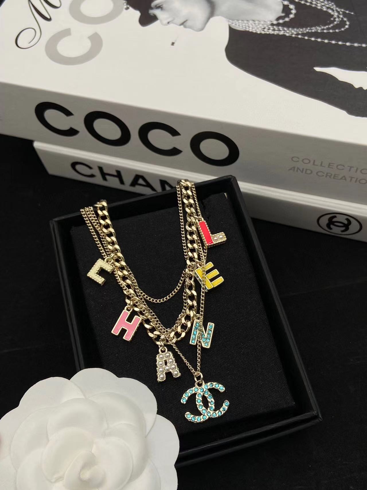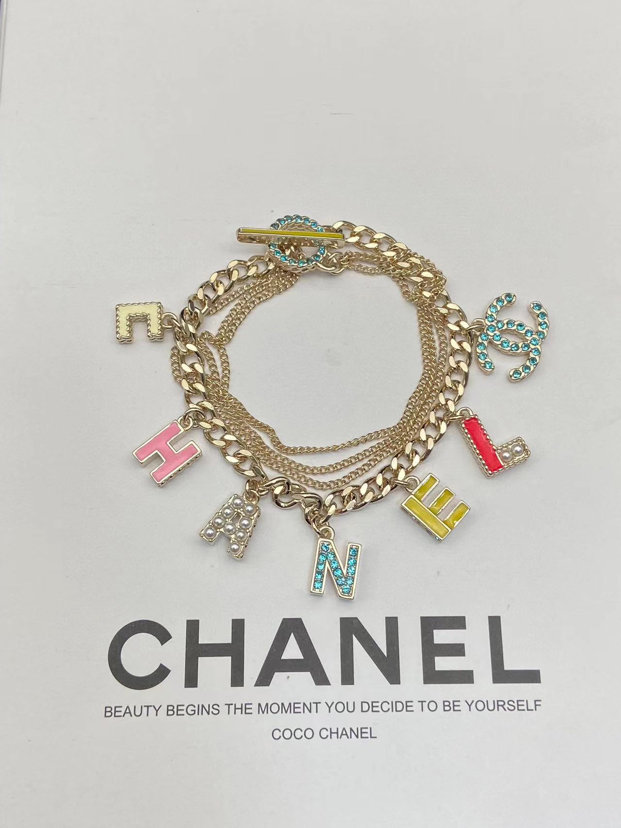 CHANE1 カラフルレターブレスレット+ネックレス 2点セット