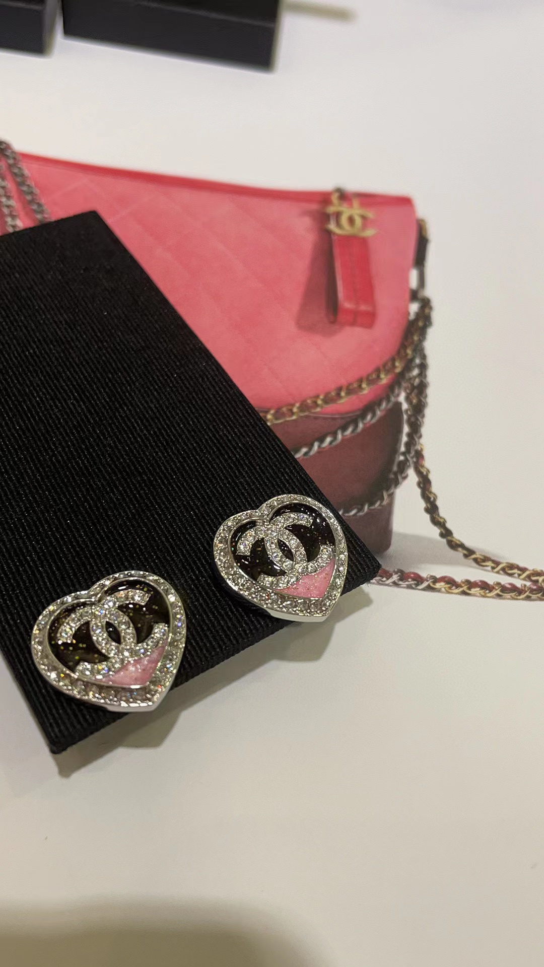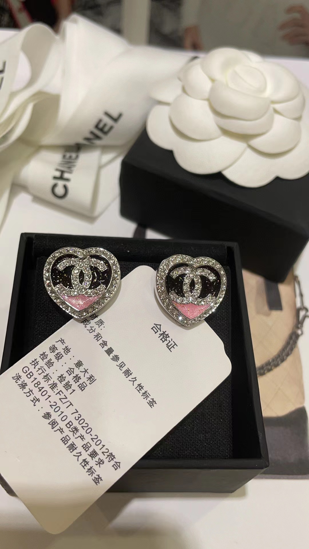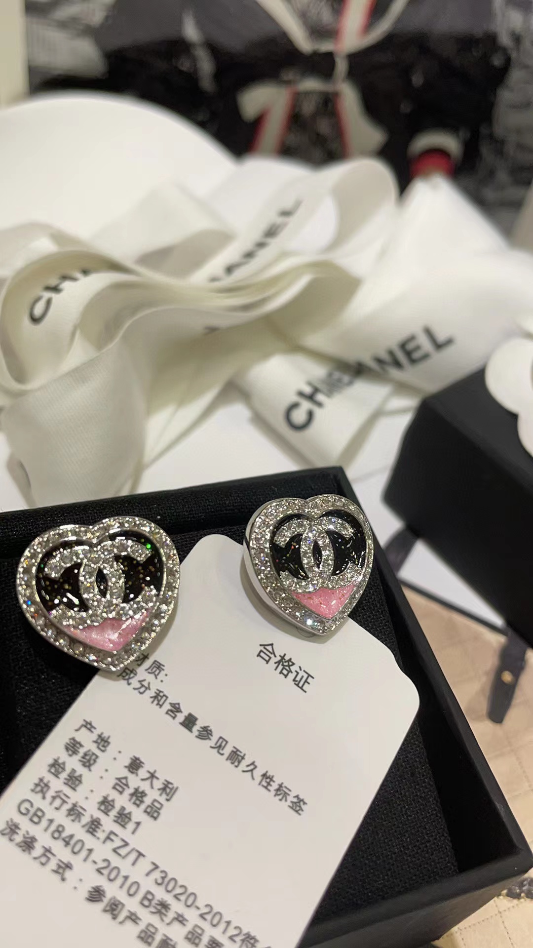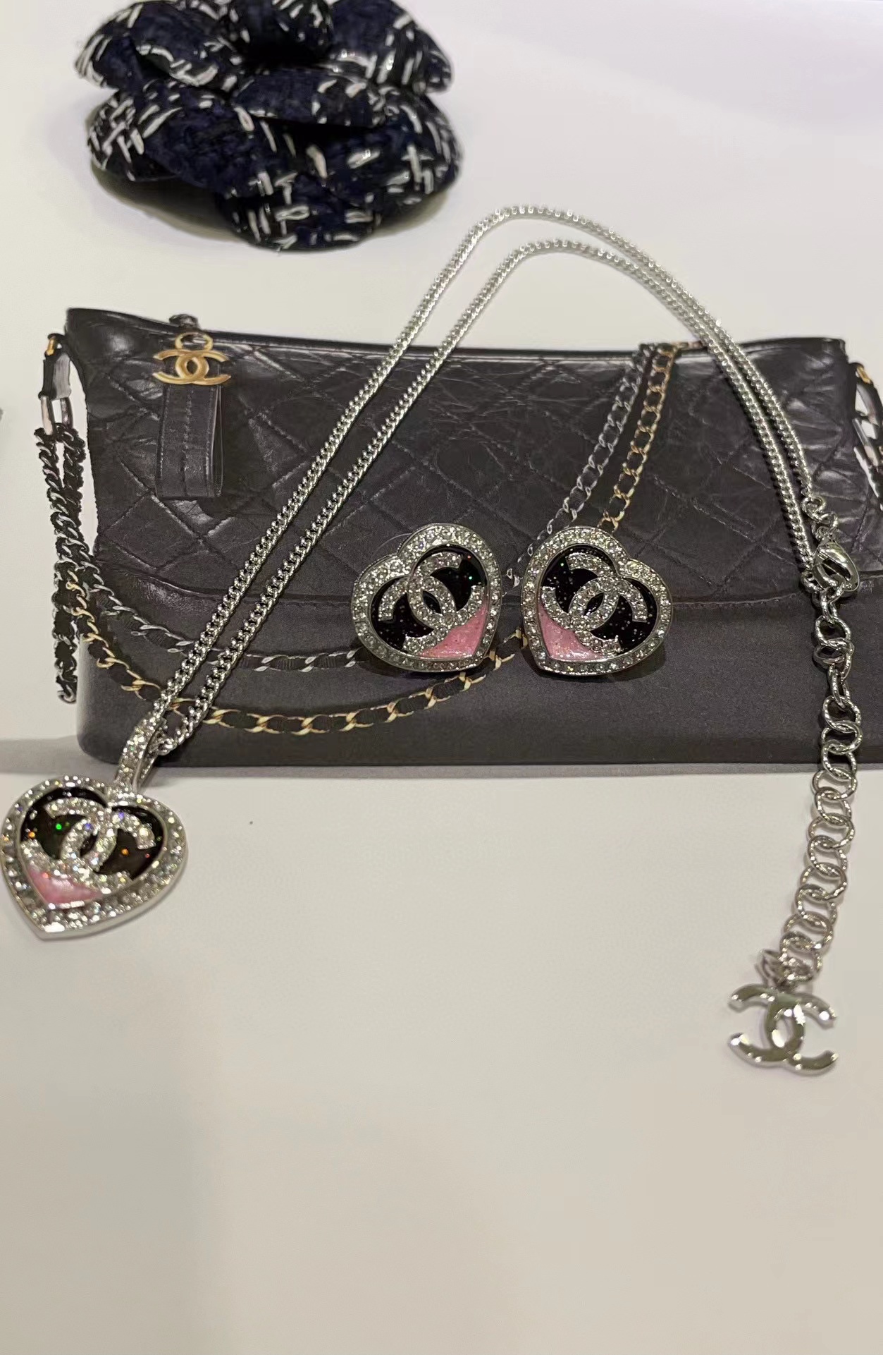 CHANE1 エナメル ラブフル ダイヤモンド ダブルC ピアス+ネックレス 2点セット【50%割引+送料無料】