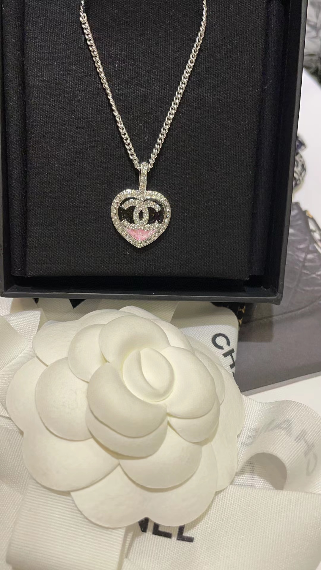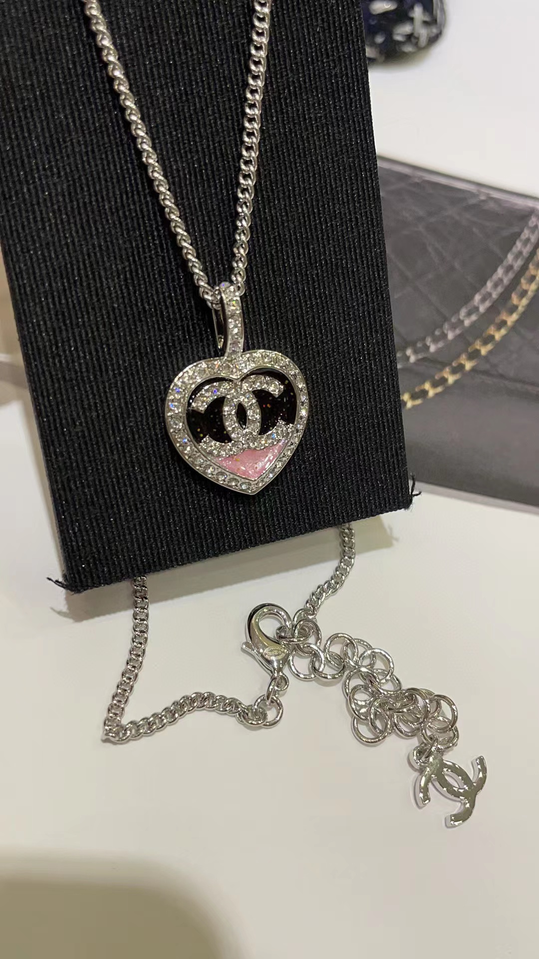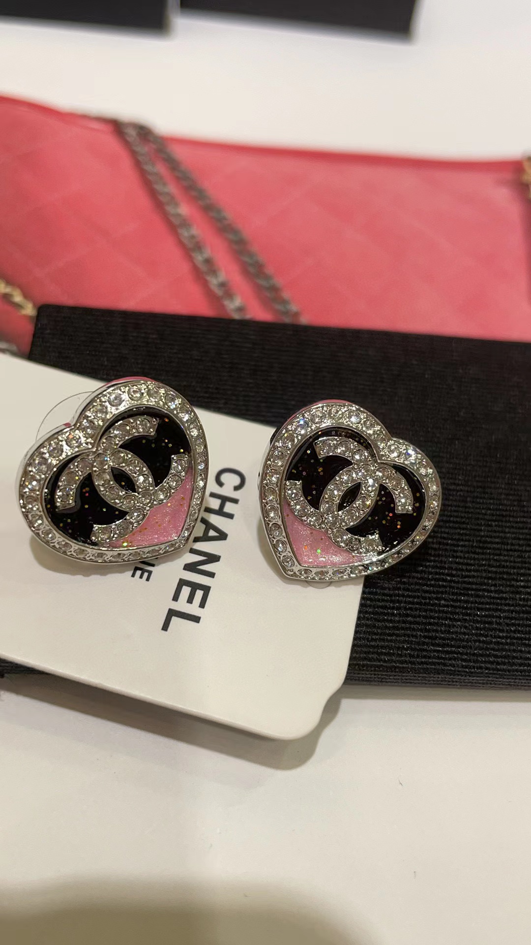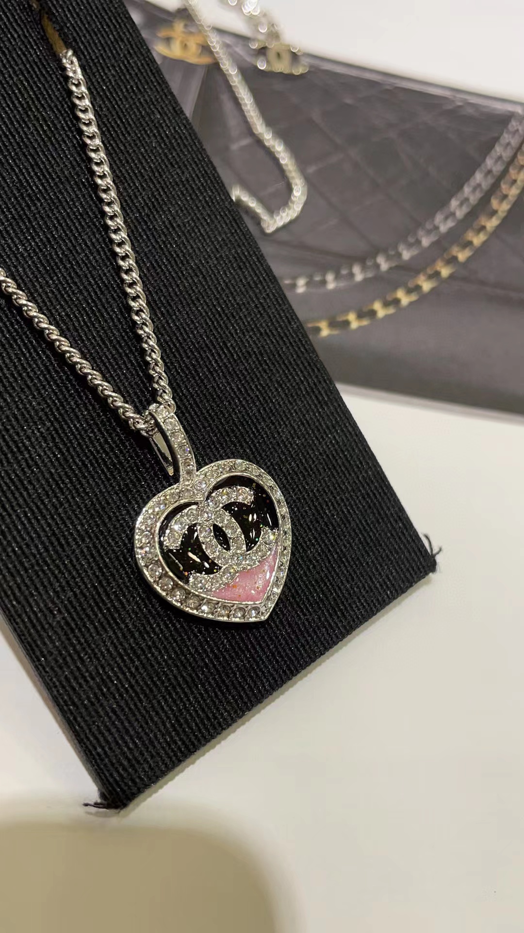 CHANE1 エナメル ラブフル ダイヤモンド ダブルC ピアス+ネックレス 2点セット【50%割引+送料無料】