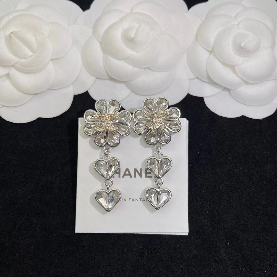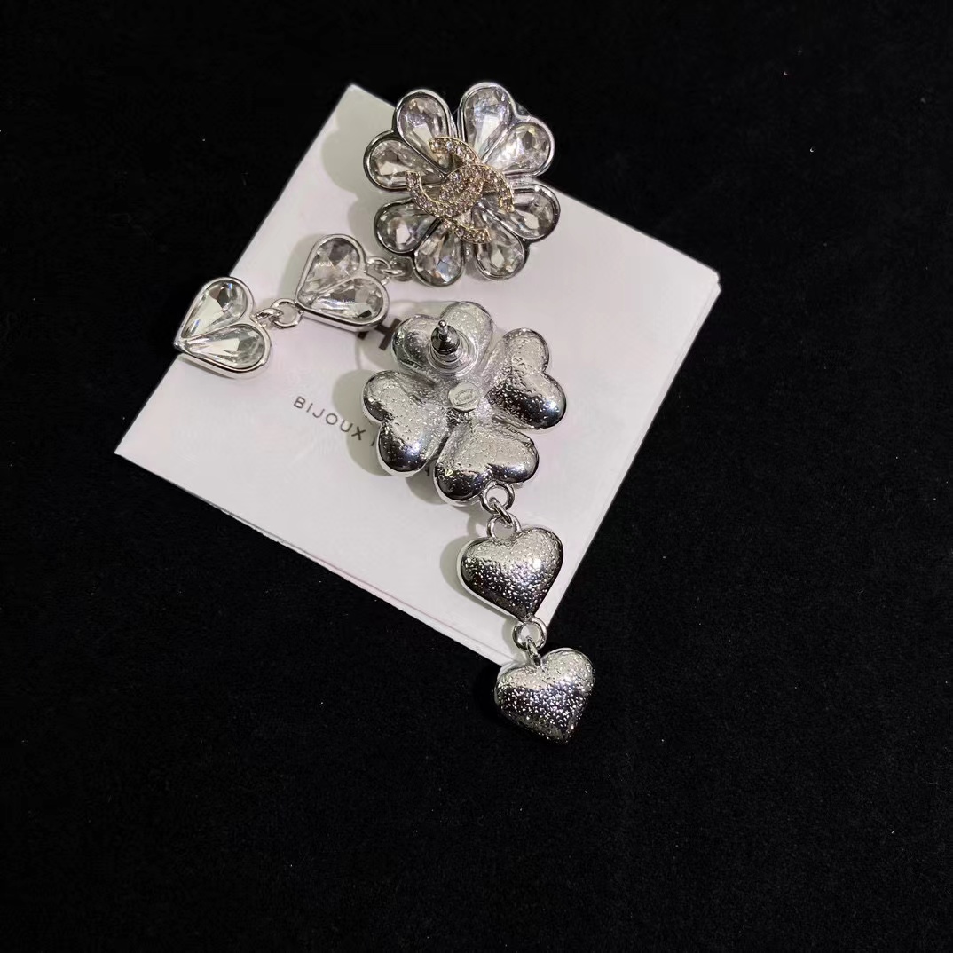 CHANE1 四つ葉のクローバー ダブルC イヤリング