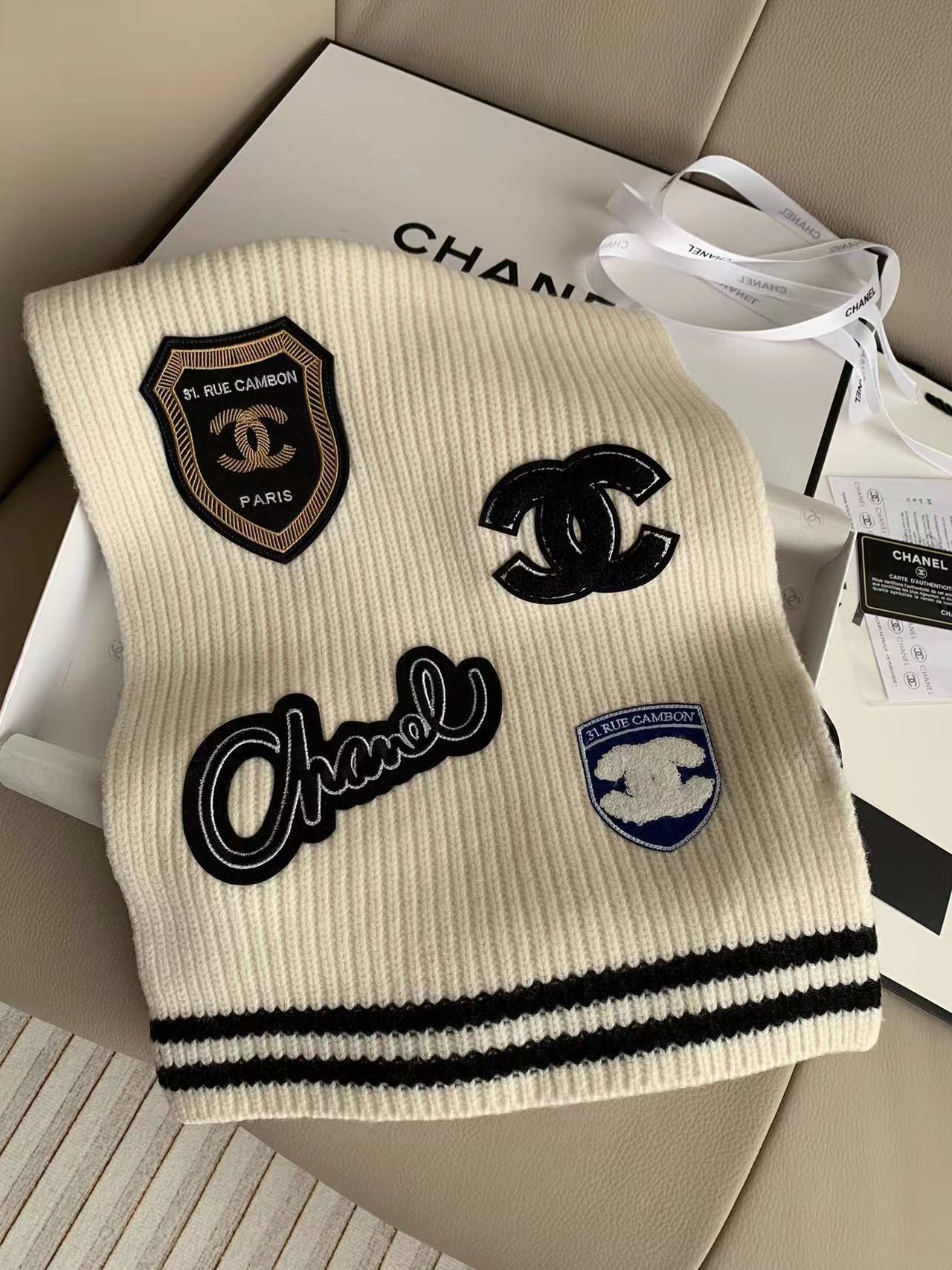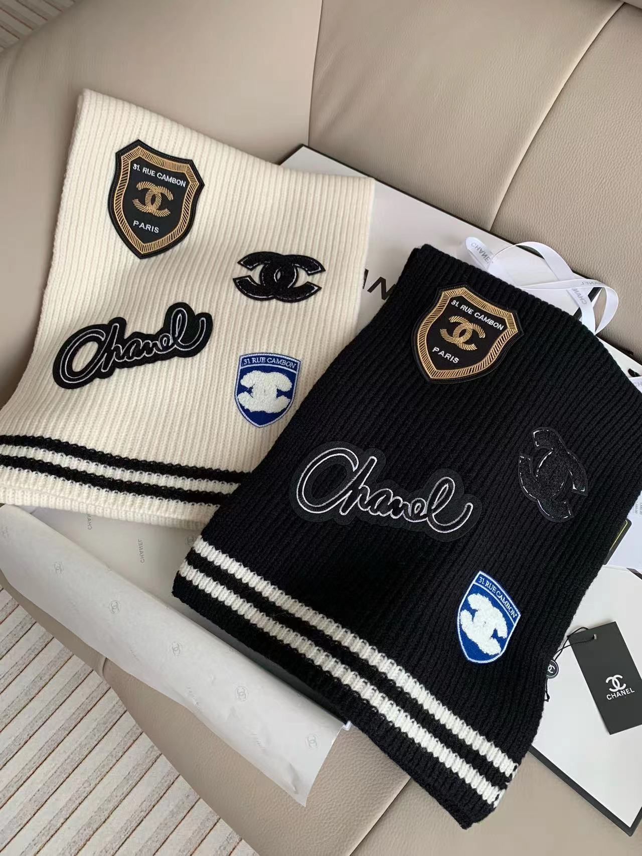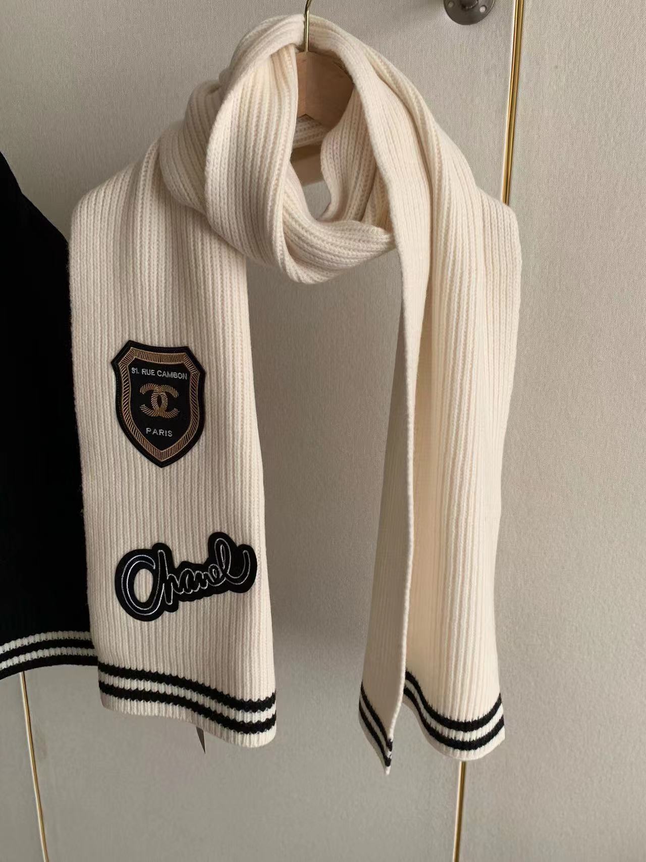 CHANE1 マイクロ刺繍カシミア ニット スカーフ【50%割引+送料無料】