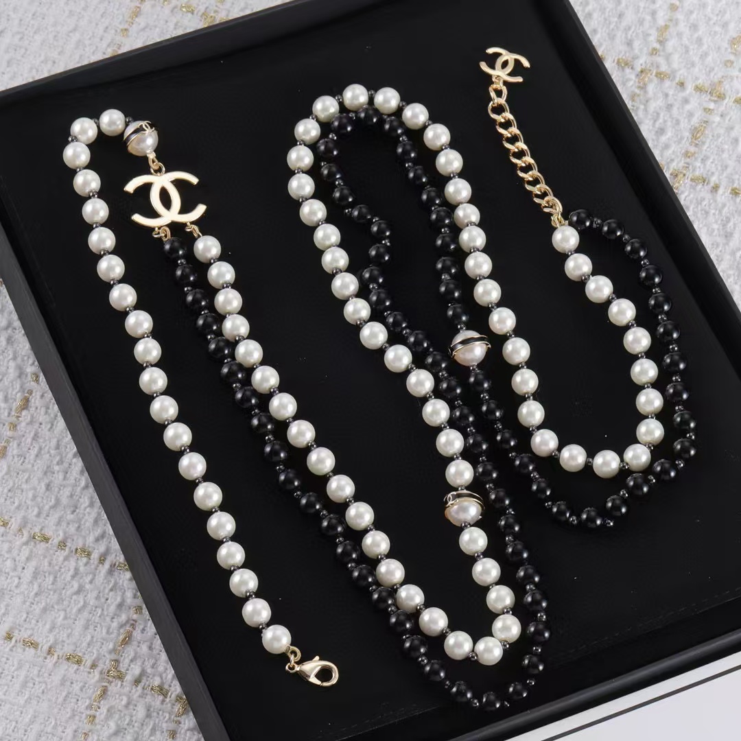 CHANE1 白黒パールセーターチェーン【50%割引+送料無料】
