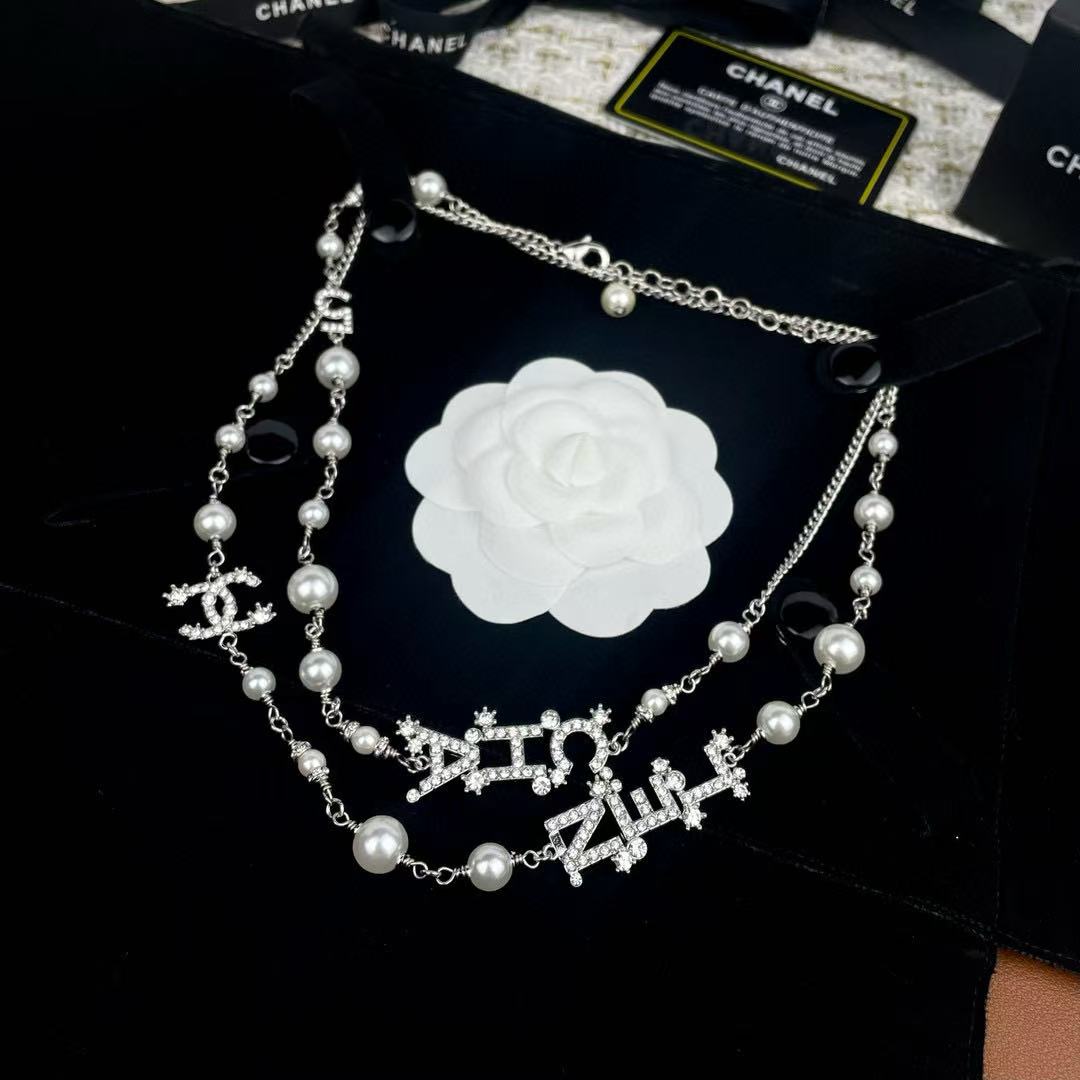 CHANE1 ダイヤモンドとパールのダブルレイヤーセーターネックレス【50%割引+送料無料】
