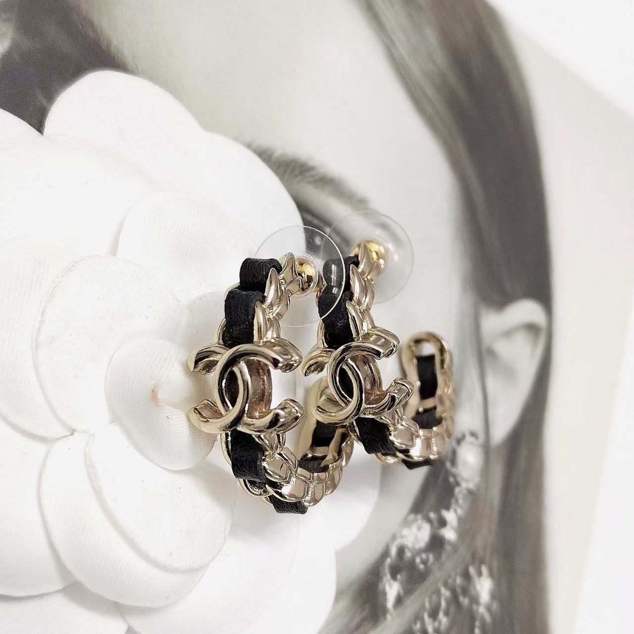 CHANE1 ダブルCレザーイヤリング【 50%割引+送料無料】