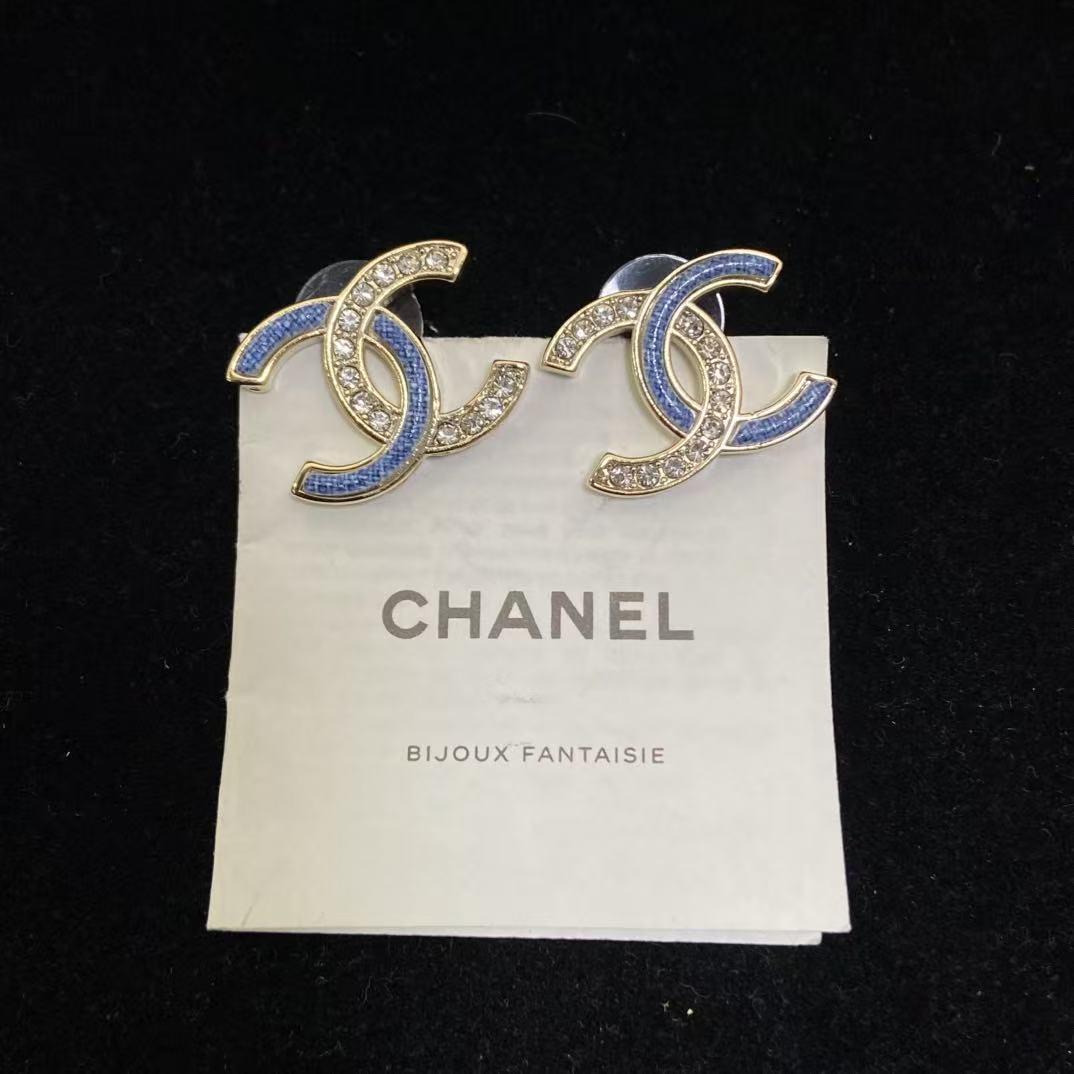 CHANE1 ブルー ダブルC ダイヤモンド スタッドピアス【50%割引+送料無料】