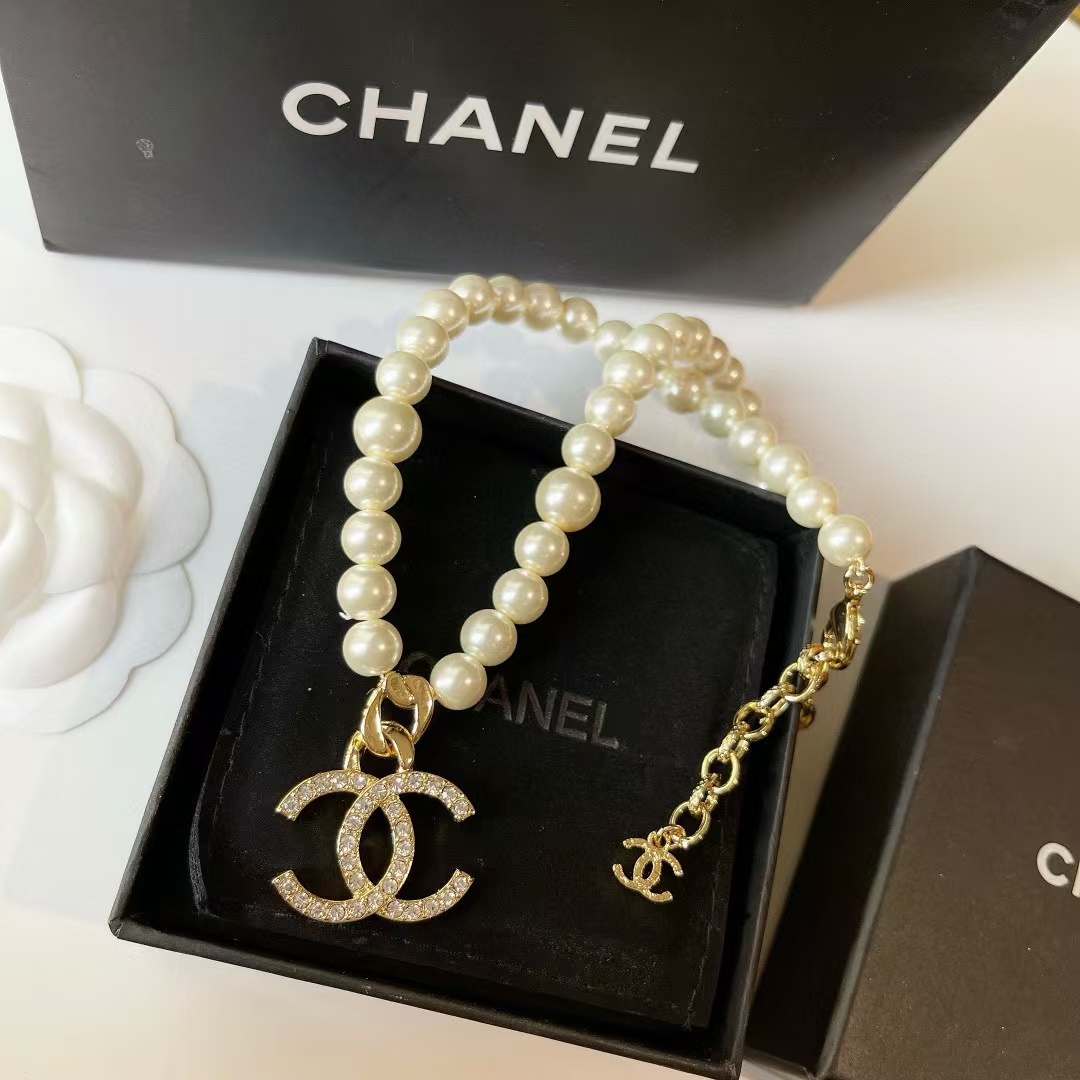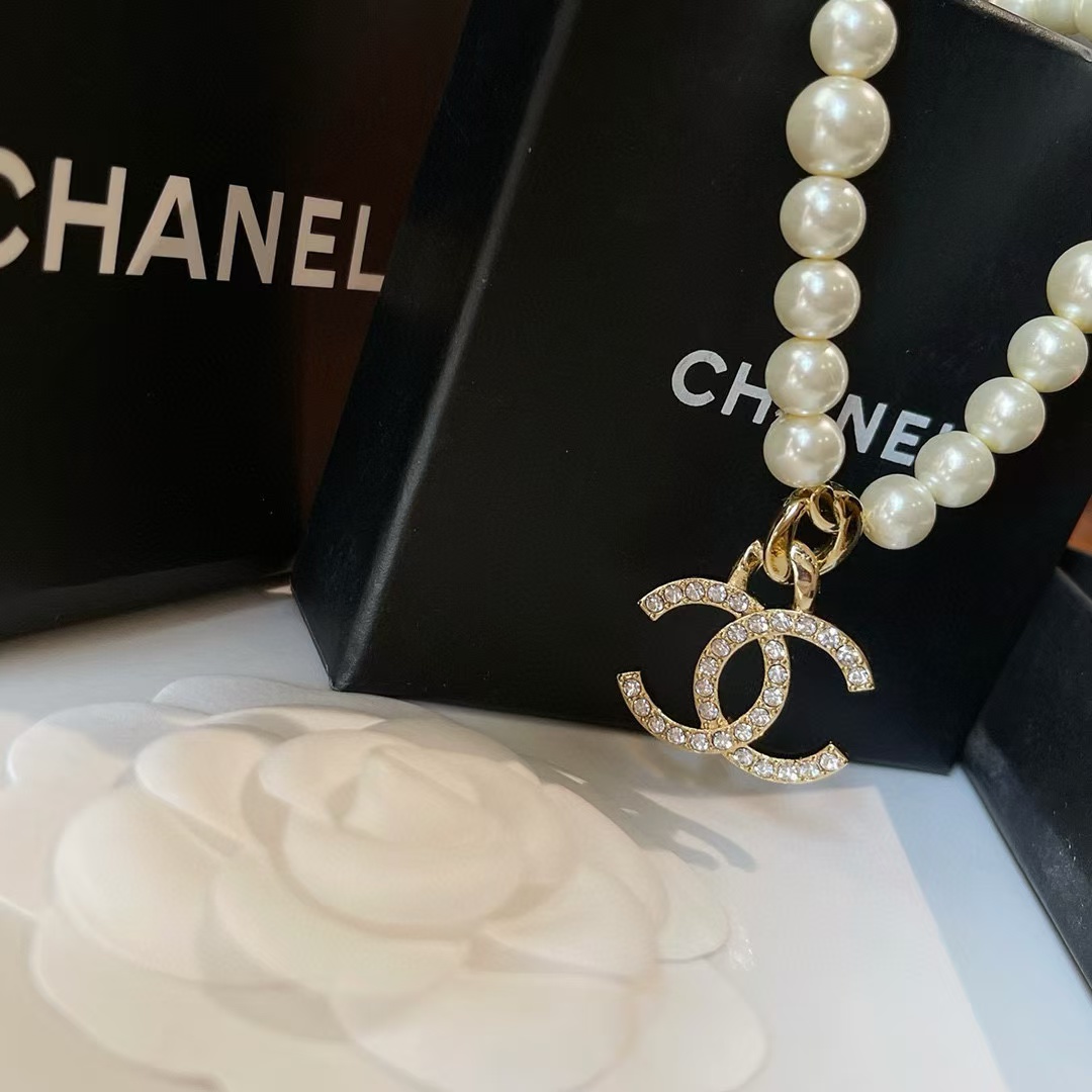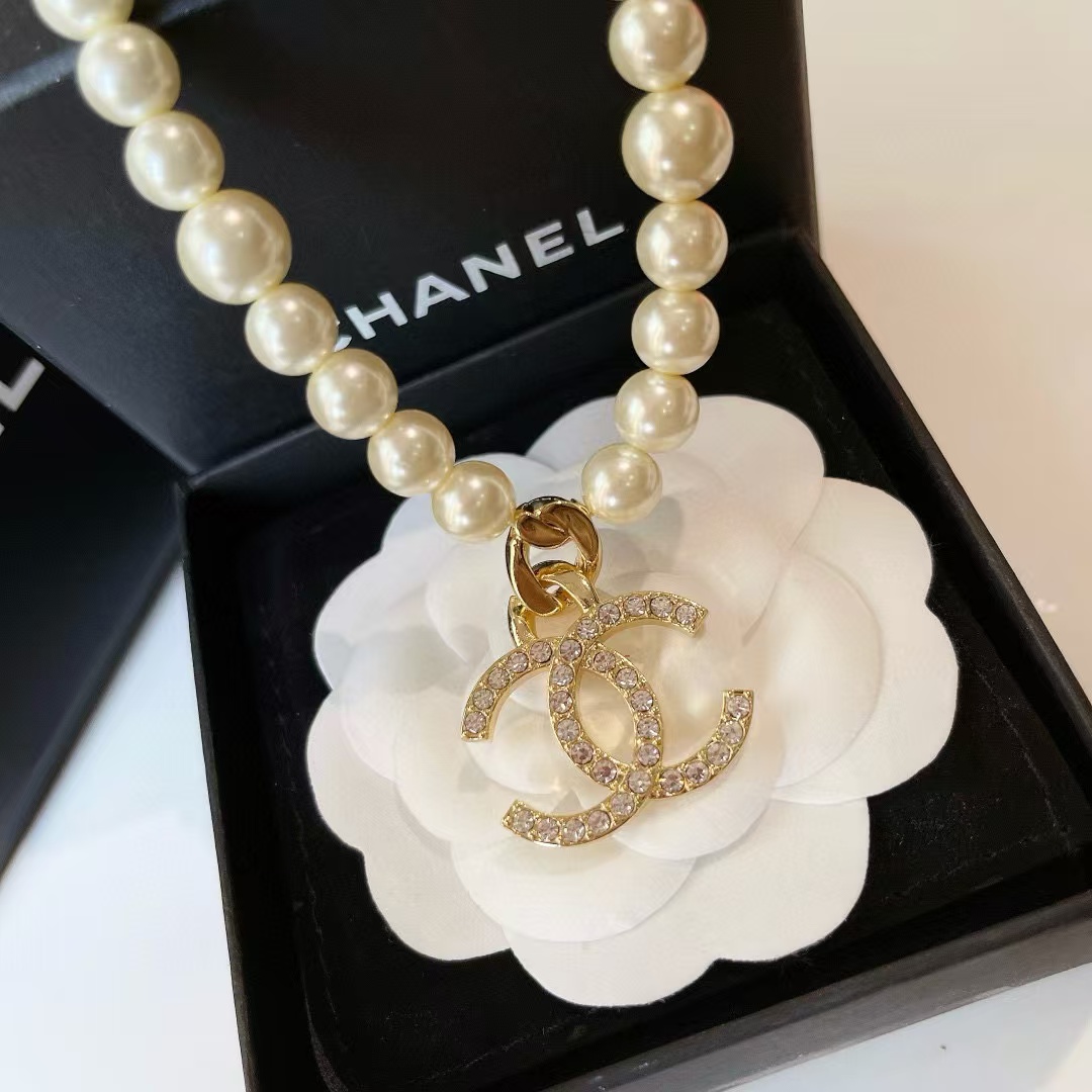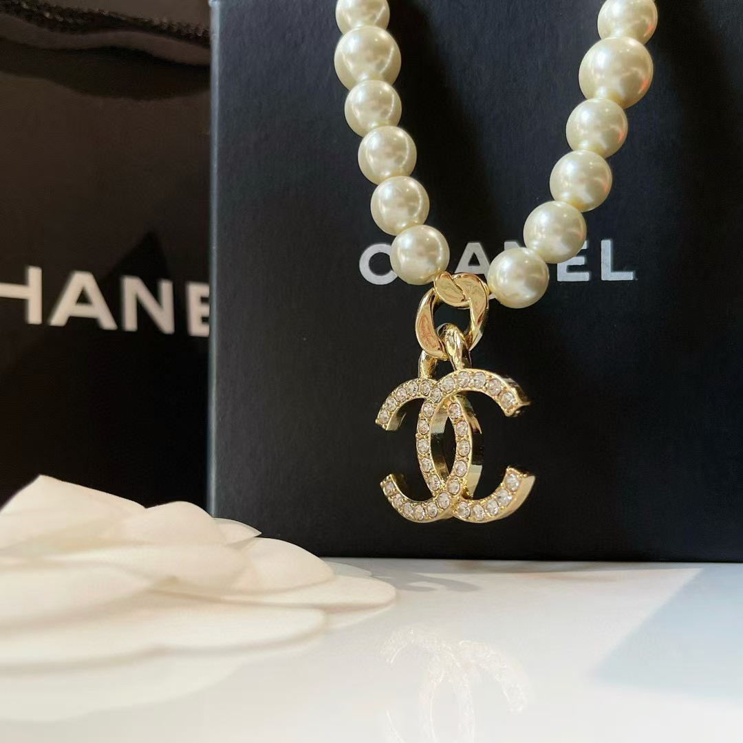 CHANE1 ダブルC ダイヤモンドパールネックレス