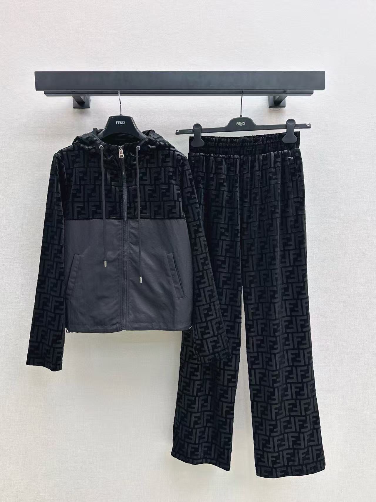 FEND1 ベルベットレタージャケット+パンツ ツーピースセット【50%割引+送料無料】