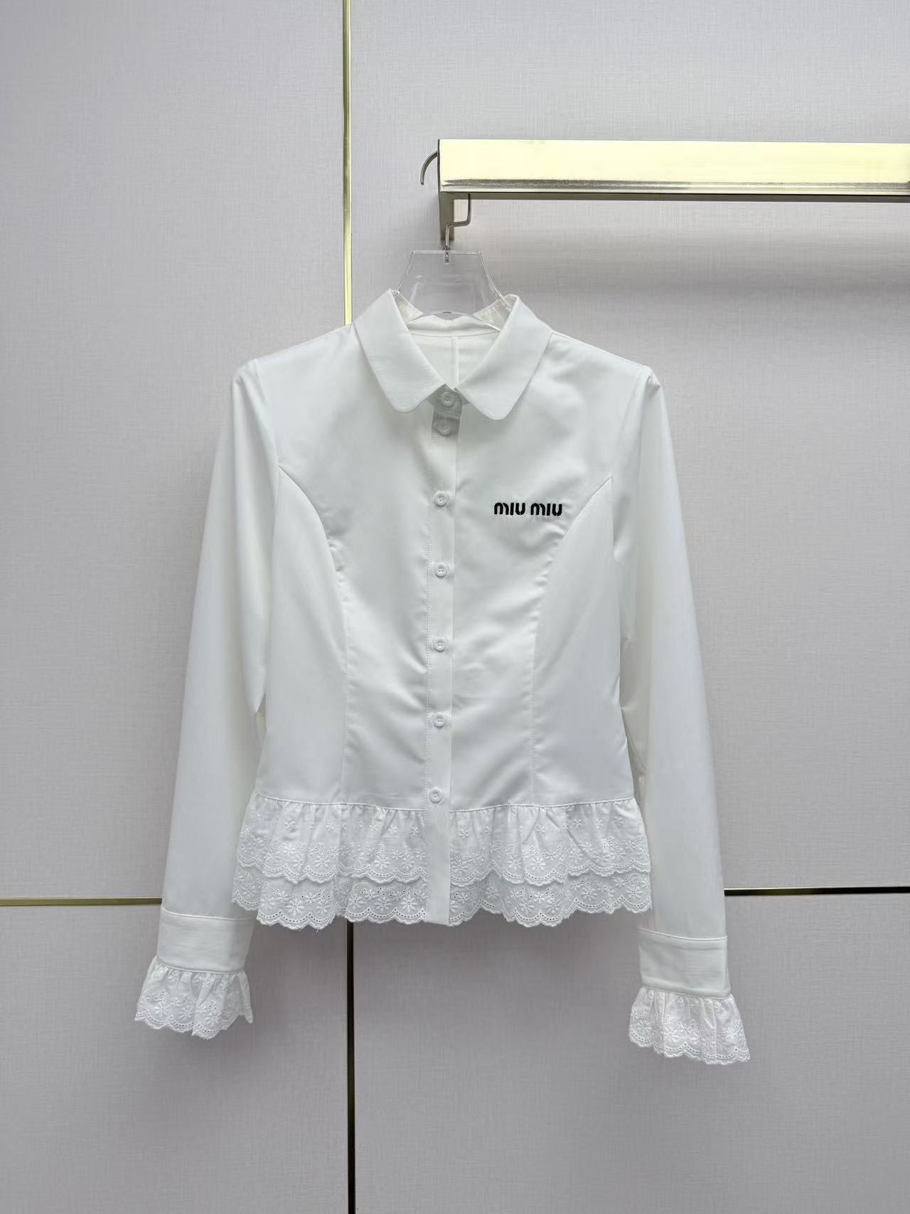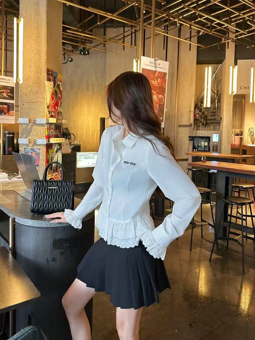 M1UM1U フリル付きレタープリントシャツ【50%割引+送料無料】