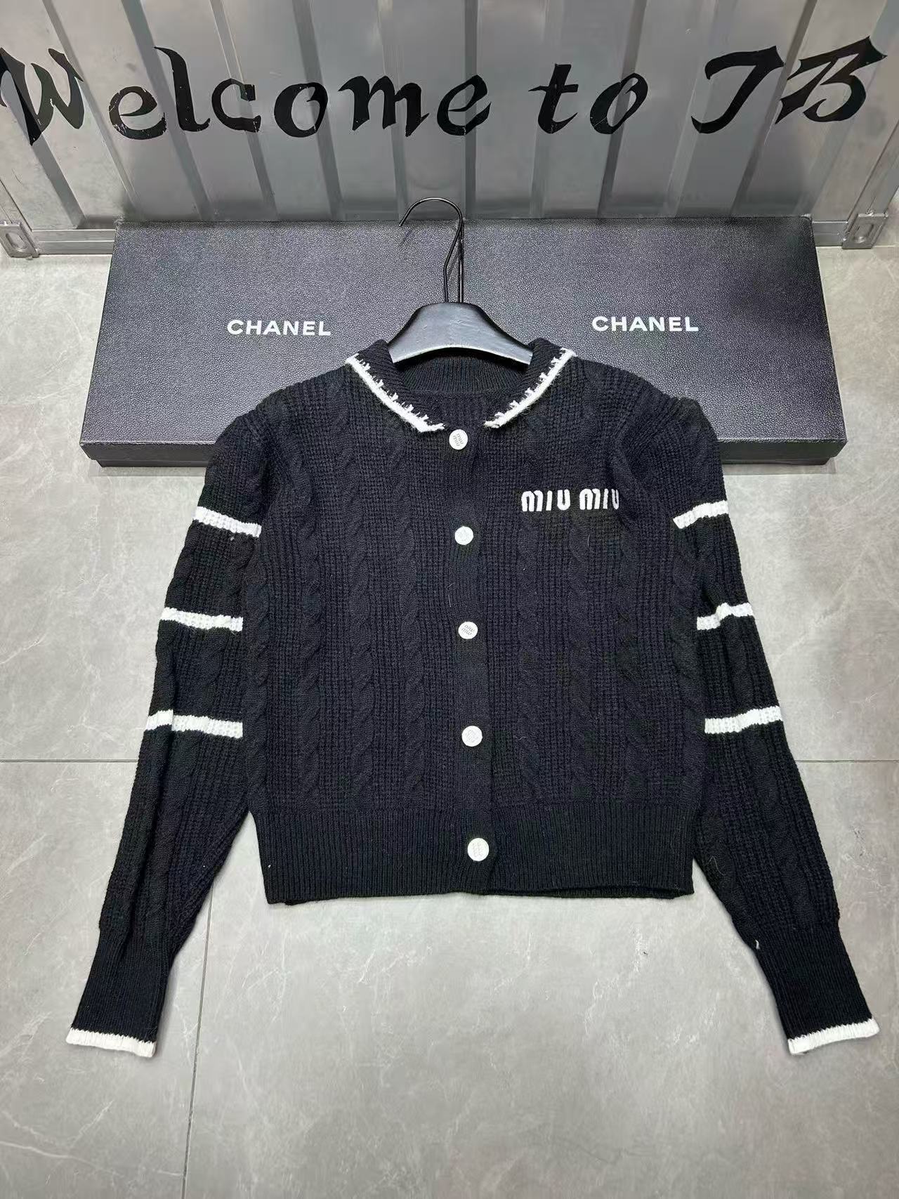M1UM1U ストライプ レターカラー ウールカーディガン【50%割引+送料無料】