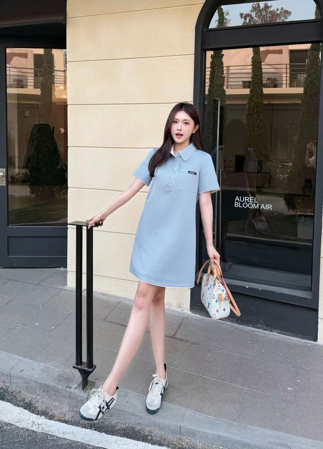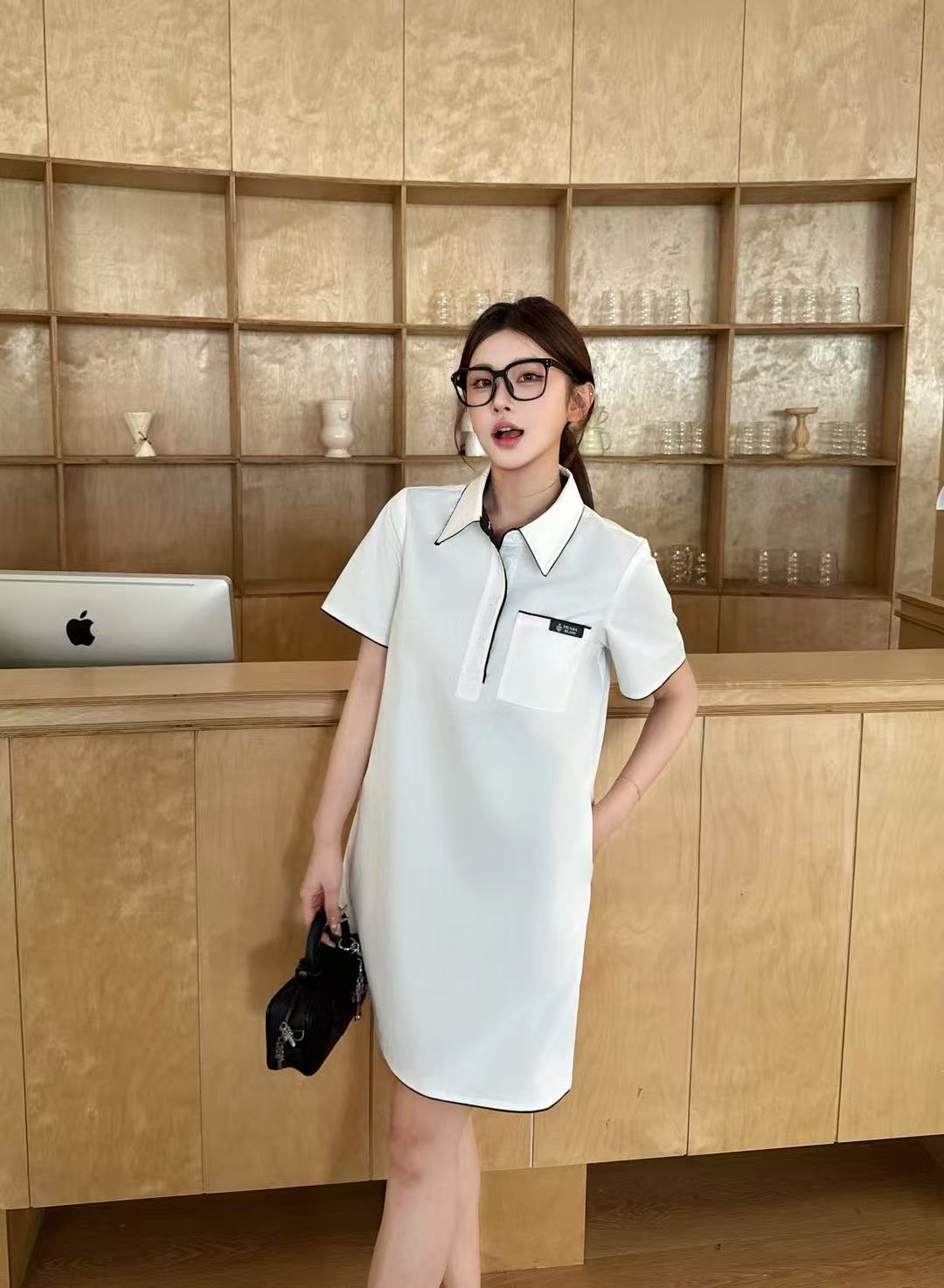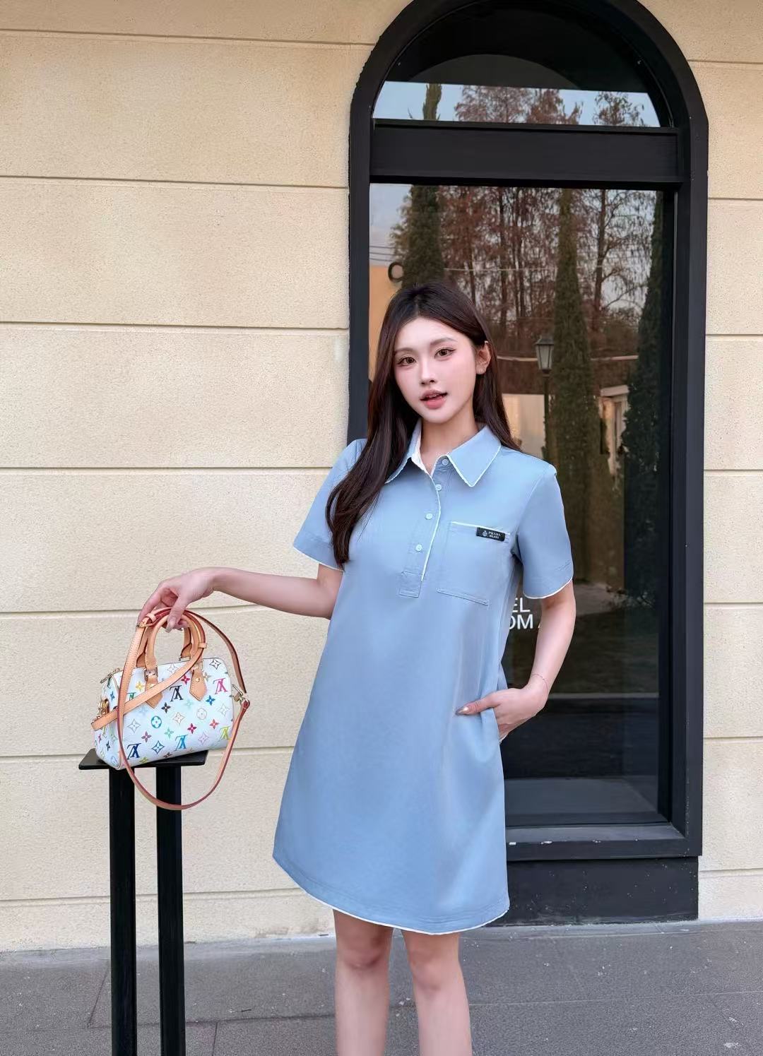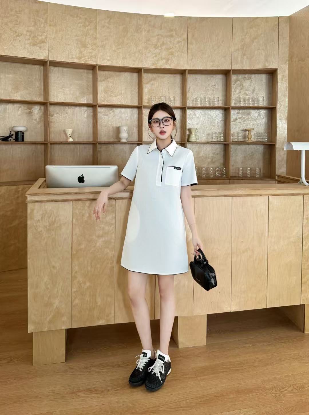 M1UM1U ラペルワンピース(文字刺繍ポケット付き)【50%割引+送料無料】