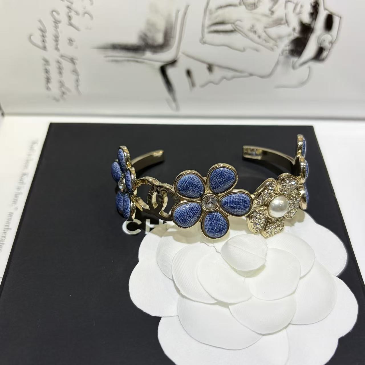 CHANE1 ダブルC ブルーフラワーブレスレット