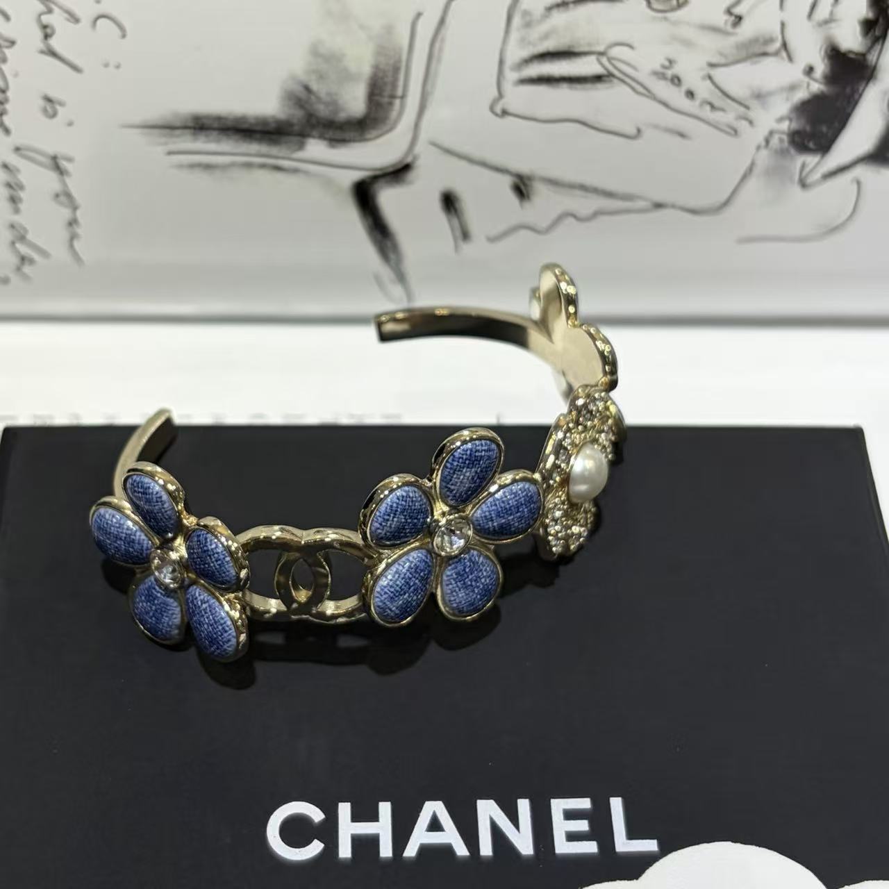 CHANE1 ダブルC ブルーフラワーブレスレット【50%割引+送料無料】