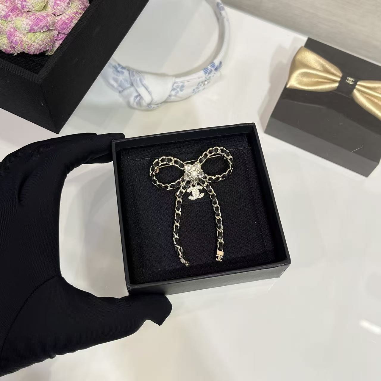CHANE1 ダブルC ボウブローチ
