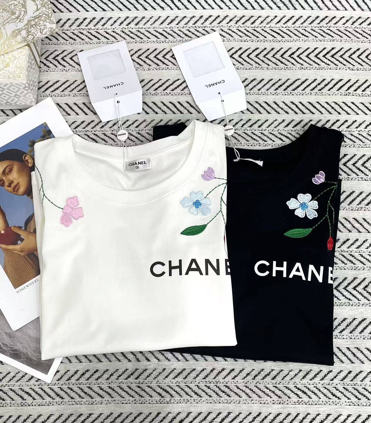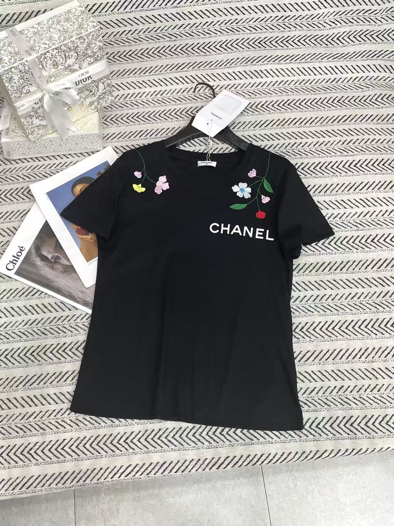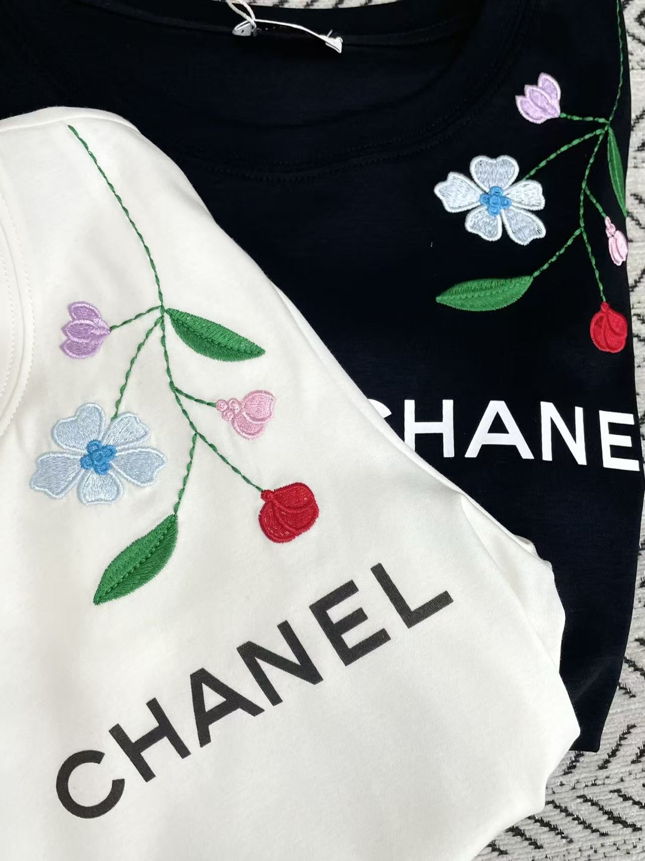 CHANE1 刺繍花文字Tシャツ【50%割引+送料無料】