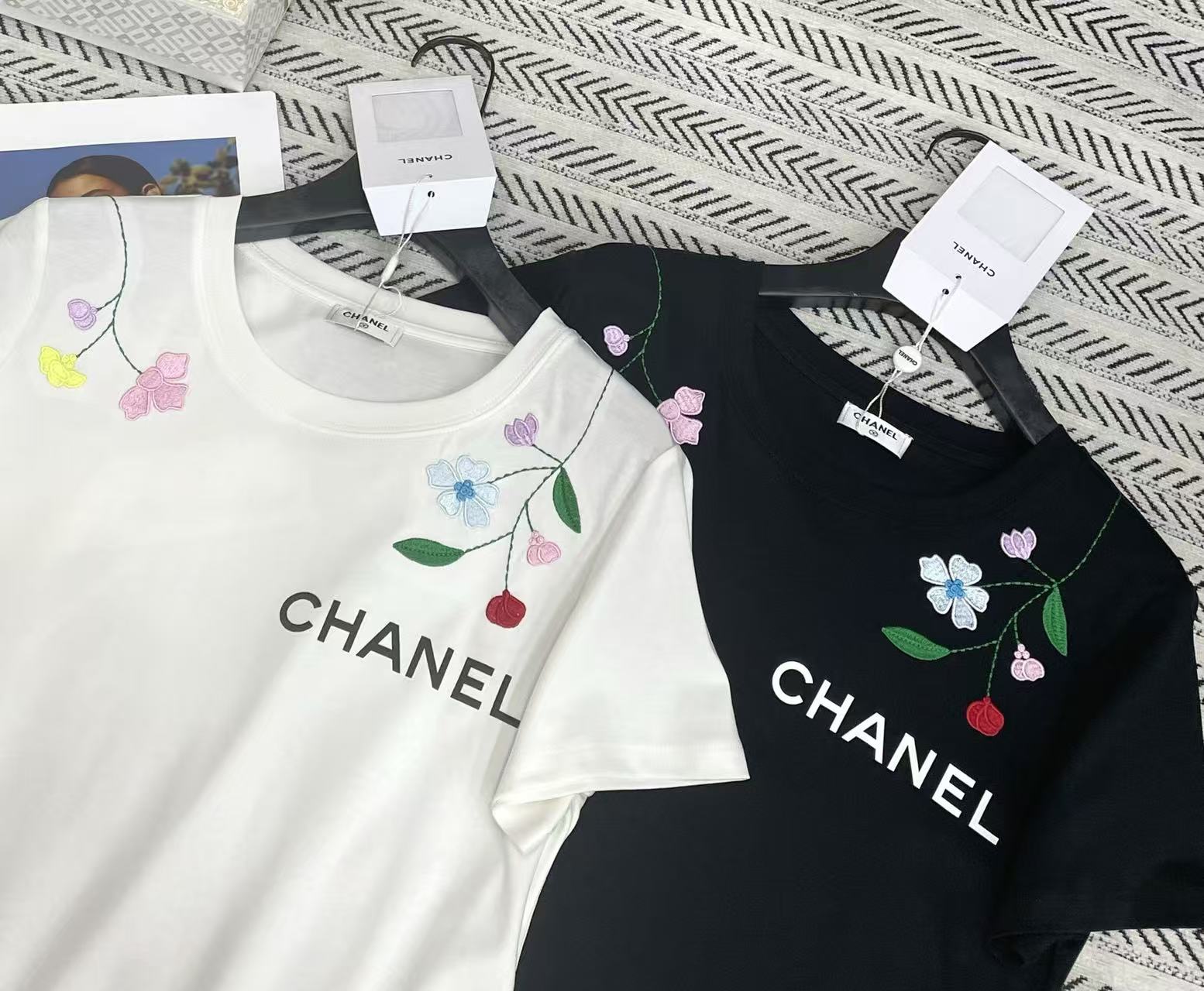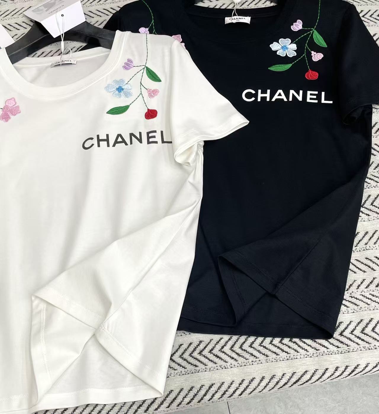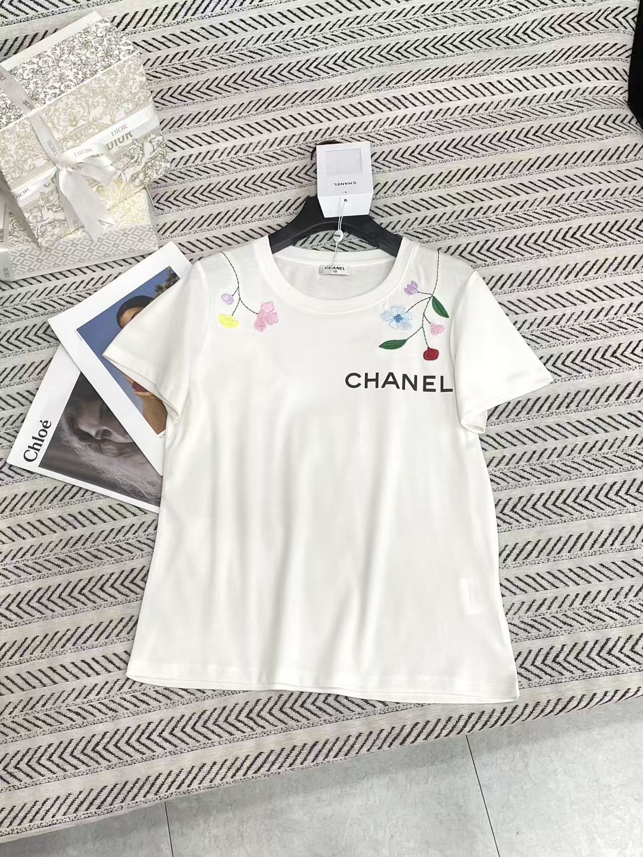 CHANE1 刺繍花文字Tシャツ【50%割引+送料無料】