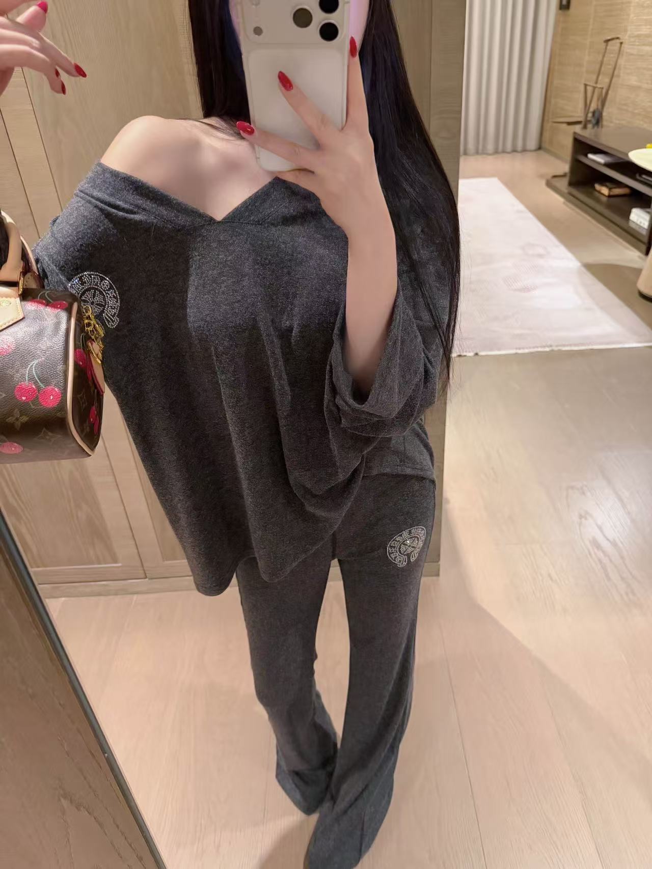 Chr0me Hearts ラインストーン Vネック トップ + パンツ セット【50%割引+送料無料】