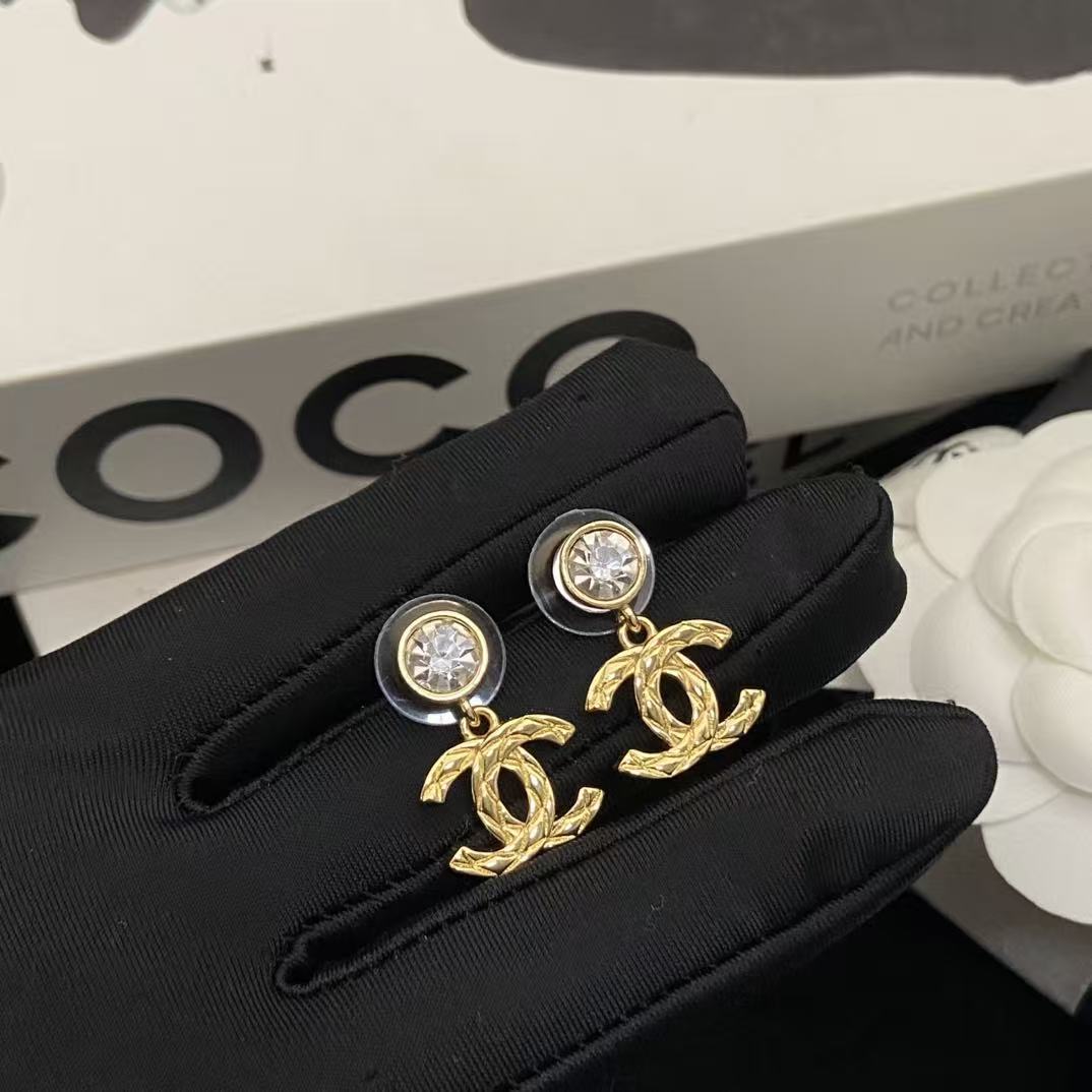 CHANE1 ダブルC ダイヤモンド スタッドピアス